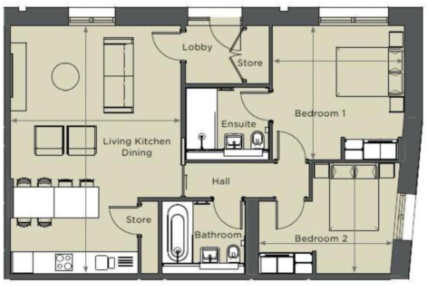 This is a modern two-bedroom apartment located in the Hudson Quarter of York. The property benefits from a contemporary design and appears to be in excellent condition. While it doesn’t have a garden, its location offers convenient access to city amenities and transport links. The price is reasonable considering the condition and location, although the price per square foot is above the local average. The apartment is situated near Pickhill Church Of England Primary School which has a ‘Good’ Ofsted rating.