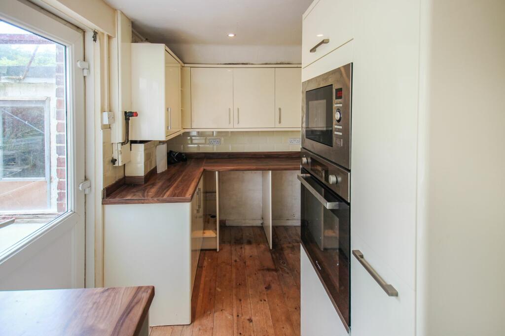This two-bedroom detached bungalow in Newton Abbot, Devon, presents a mixed opportunity. Located on Newtake Rise, it offers a convenient position near Newton Abbot train station and several well-regarded schools. However, the property is in need of significant modernisation. The photos clearly show cosmetic issues throughout, including peeling wallpaper and paintwork, suggesting that a budget for renovations would be essential for a buyer. While a garden is included, it is heavily overgrown and requires substantial landscaping. The list price appears to reflect the value of the property once improved. The lack of sq ft information for this property and nearby properties makes a conclusive comparative price analysis challenging. Prospective buyers should carefully weigh the costs of necessary repairs and renovations against the property’s potential value after modernisation. Overall this is a fixer-upper in a convenient location. Buyers should be aware of potential hidden issues with an older property.