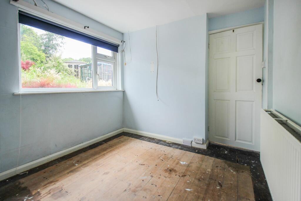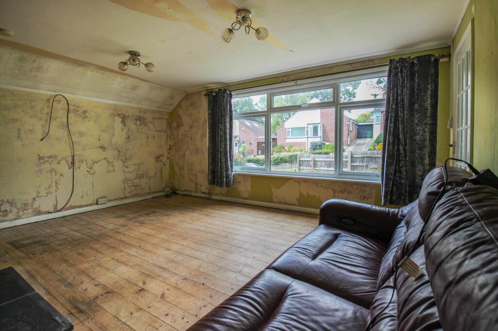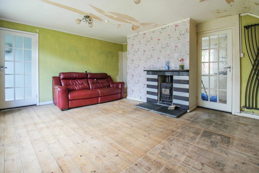 A detached bungalow in need of modernisation, with potential to extend subject to consents, standing in a good sized overgrown garden