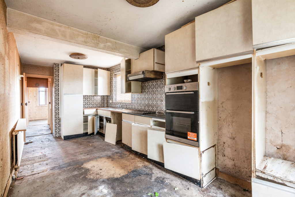 This semi-detached bungalow in Brighton and Hove presents a significant renovation opportunity. While the location offers convenient access to schools and transportation, the property’s condition requires a comprehensive overhaul. The garden, though currently overgrown, provides valuable outdoor space. The attractive listing price reflects the work needed, making it an appealing prospect for buyers willing to invest in refurbishment.