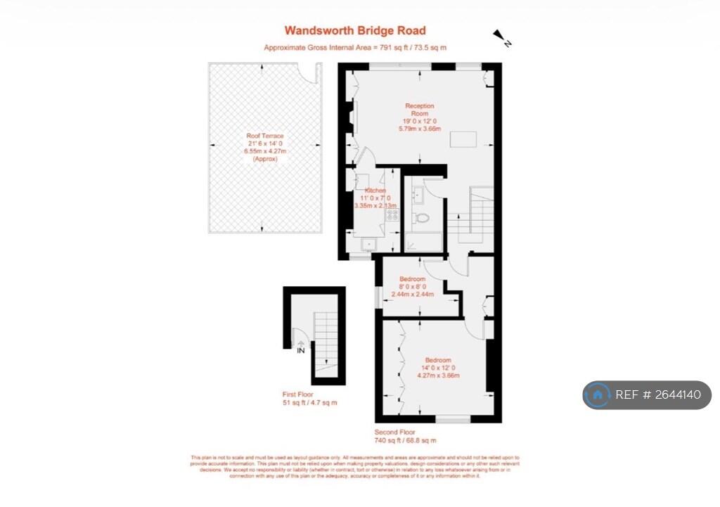A bright and well-proportioned split level two bedroom flat with 797 sq ft (74 sq m) of internal space and a huge SW facing roof terrace. The property is entered on the first floor, and this creat... ** Property Reference: 2644140 **