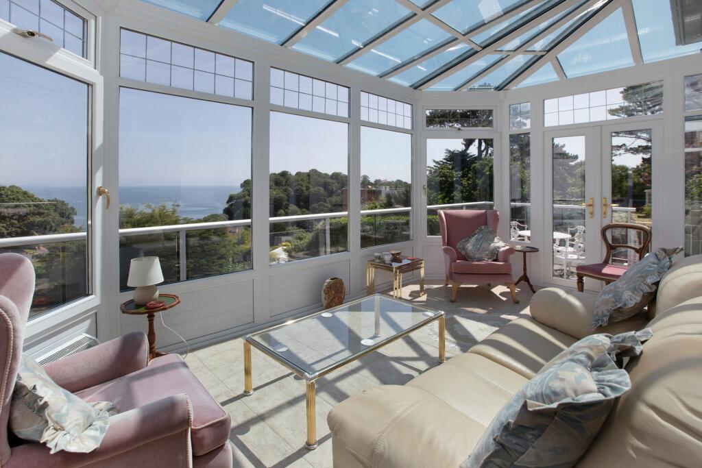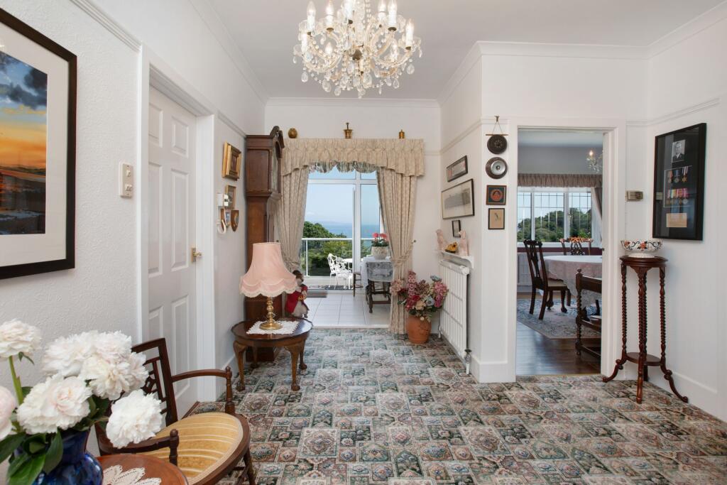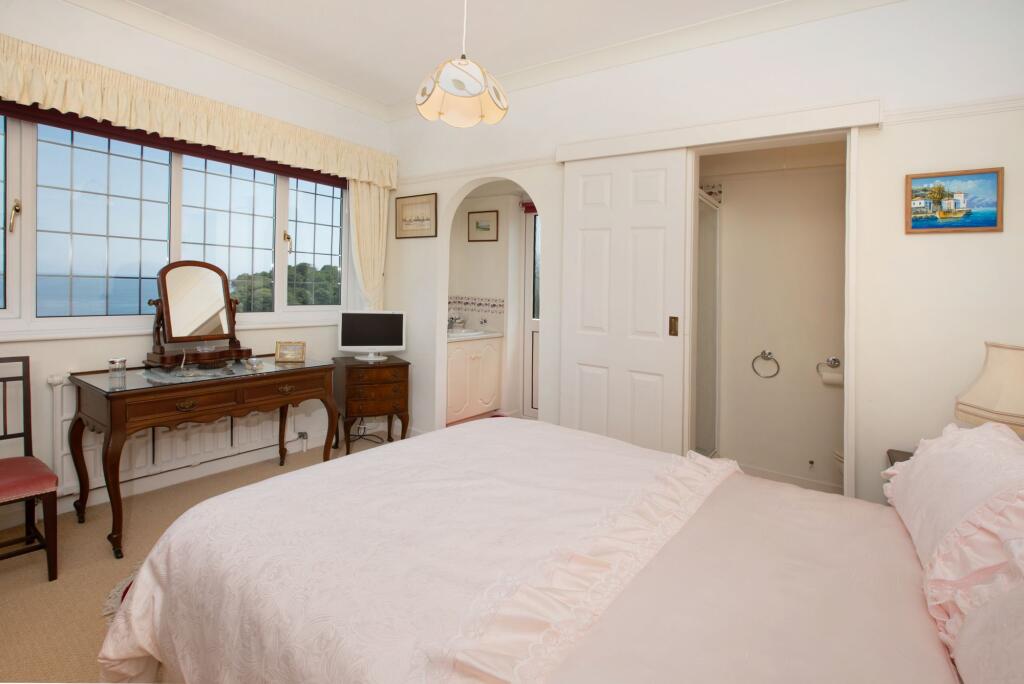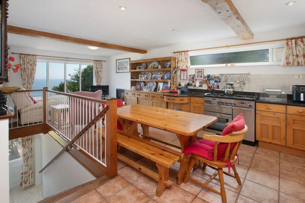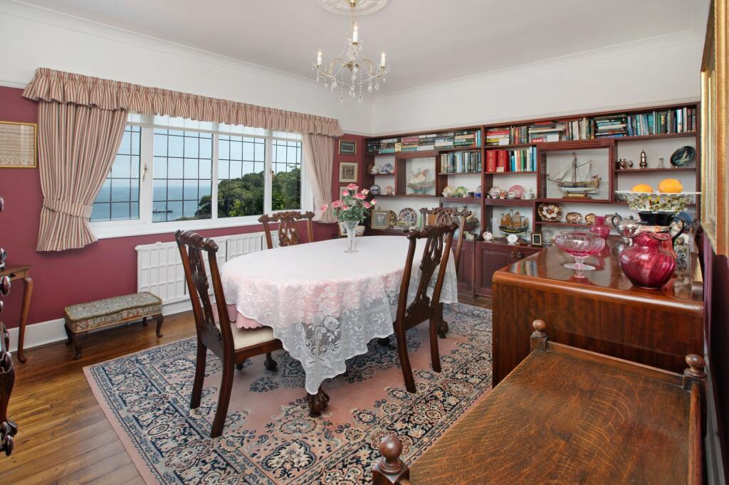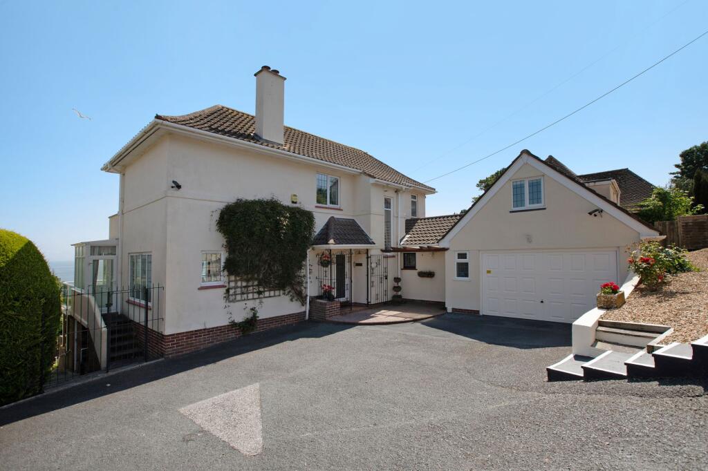 An elegant, detached and extended 1950’s-built residence set in an elevated position in this sought after coastal village with outstanding sea views. Substantial, family sized accommodation arranged over three levels with much character and charm. Ample parking, large garage with hobbies room ab...