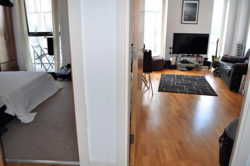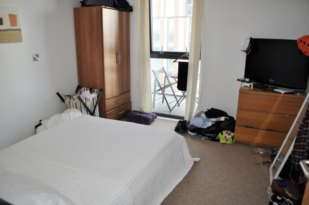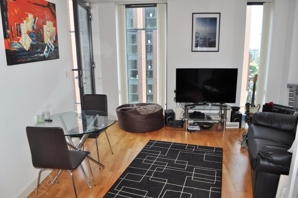 Available July 25. Waterfront apartment in the Millennium Tower on Salford Quays. 13h floor 1 bedroom apartment which is fully furnished with a luxury bathroom, fully fitted modern kitchen. Includes parking