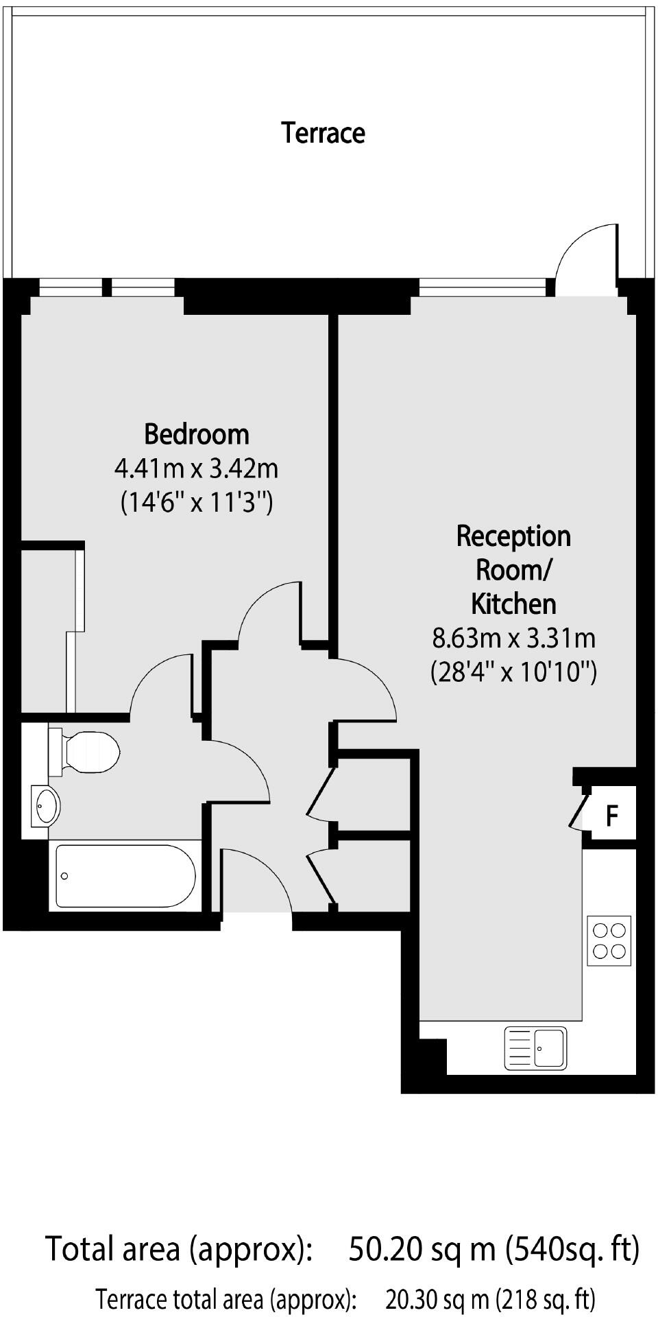 Spacious one bedroom apartment which comprises open plan kitchen living area with access to a private balcony, large bedroom and modern bathroom.