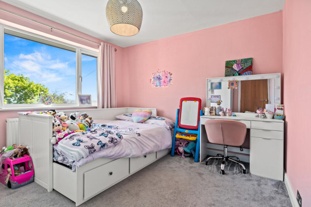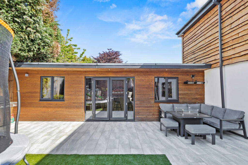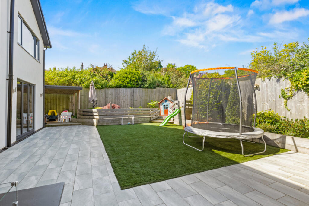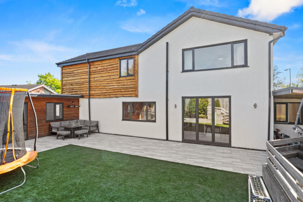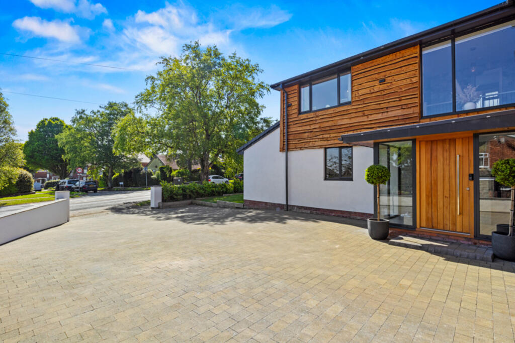 The property’s location, within easy reach of good schools and transport links, adds to its desirability and could support the higher asking price. The images suggest the property is modern and well-maintained. The large garden and ample parking are additional desirable features.