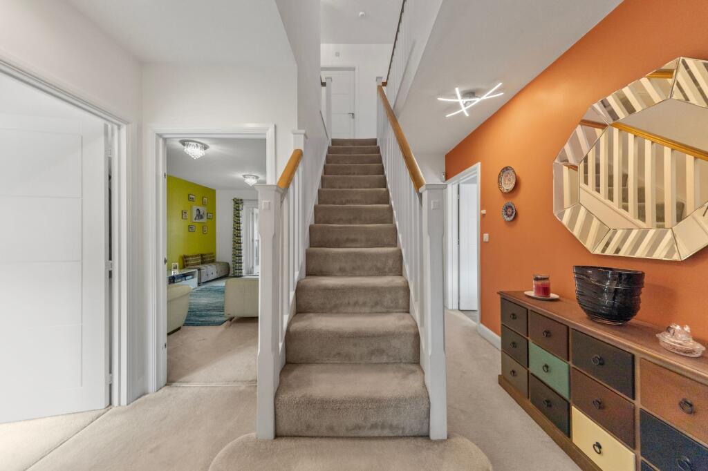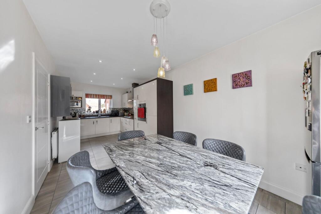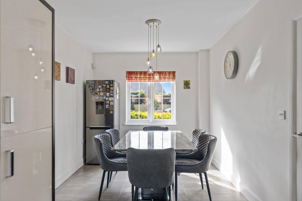Detached freehold family home by Miller Homes in 2014. Spacious & stylish with porch extension, open-plan kitchen, master ensuite, landscaped garden. Prime location near schools & retail park. Viewing essential!