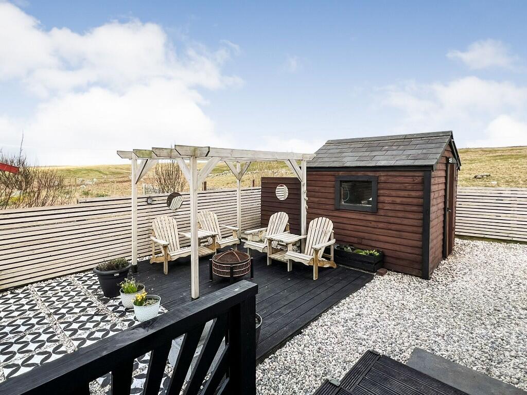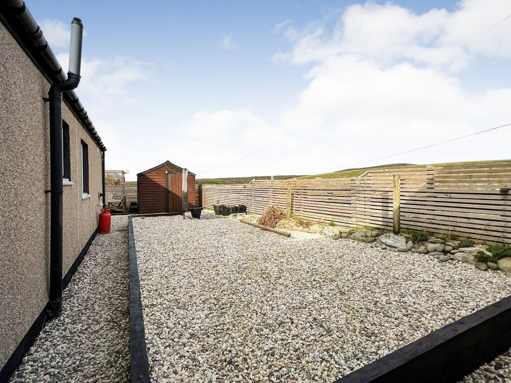 Enjoying an open southerly aspect, 18 Dalsetter Wynd is a three bedroom / two reception, single storey, detached house with a single garage, set in an attractively laid out, established garden about a mile from the local shop and primary school. Lerwick approximately 22 miles.