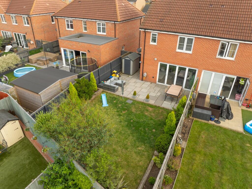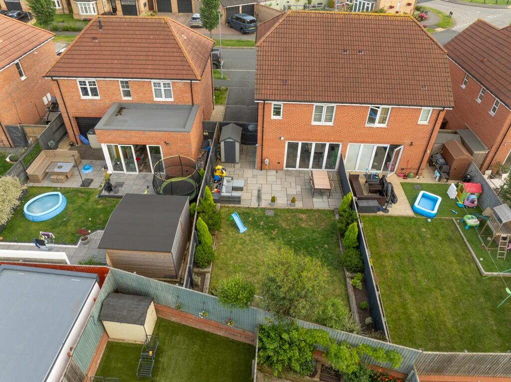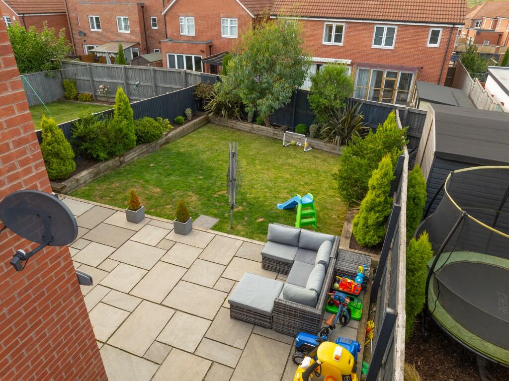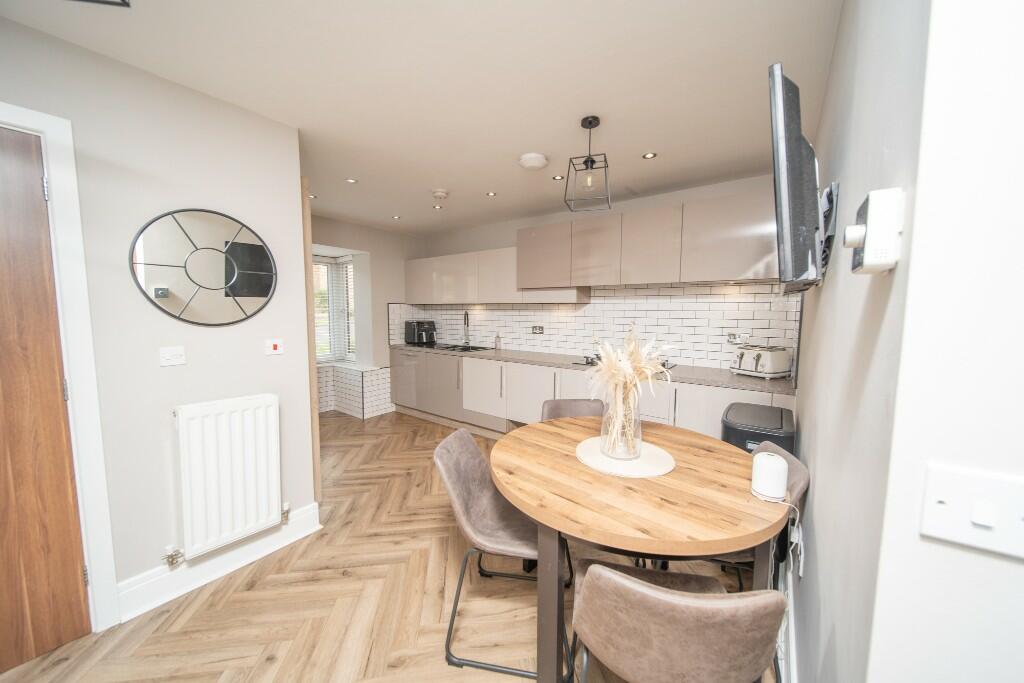 This three-bedroom, two-bathroom property located on Princes Drive in Pontefract, West Yorkshire, presents as a well-maintained and modern home. The provided photographs showcase a recently renovated or newly built interior with a contemporary design. The kitchen and bathrooms feature modern fixtures and finishes, giving an overall impression of cleanliness and quality. The property boasts an open-plan living area that connects directly to the garden. The aerial photographs reveal a pleasant backyard area with a patio, lawn, and some landscaping. The location is convenient, with multiple schools and train stations within a reasonable distance. While information on the immediate surrounding neighborhood is limited, the proximity of amenities suggests a family-friendly area. The list price needs further analysis due to missing sqft information on comparable properties to confirm its accurate position in the market. However, based on visually similar homes in the vicinity, it suggests a competitive offering within the Pontefract market. Overall, the property is likely to appeal to families or individuals seeking a modern, well-maintained home in a convenient location.