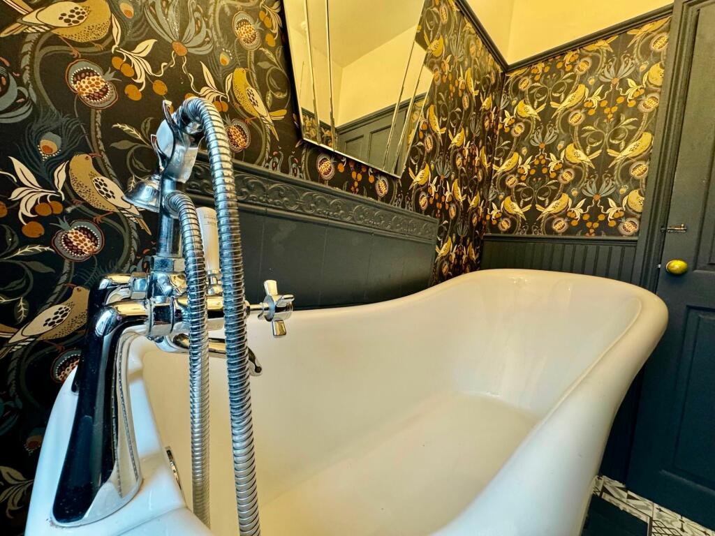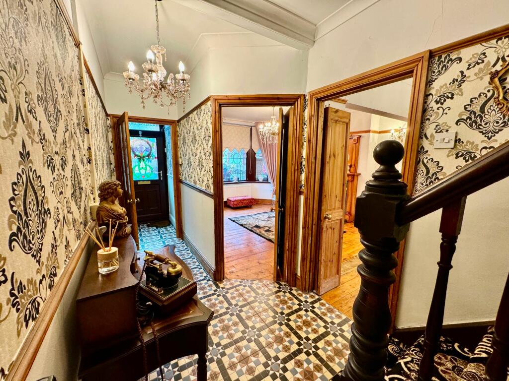 This 4-bedroom, 2-bathroom semi-detached house in Newbridge, Caerphilly, presents a blend of period charm and modern updates. The property boasts original features like feature fireplaces and wooden floors, which have been complemented with contemporary decor and wallpaper choices throughout. The kitchen is equipped with pinewood cabinets, and the property also includes a converted basement flat adding versatility and potential rental income. The outside features a relatively compact garden, and there’s also access to a garage. Its location in Newbridge offers convenience with nearby schools and a train station, though the area may lack the wider amenities found in bigger urban centers. The provided pictures suggest that the property is in a reasonably good state of repair although there may be areas requiring further investment or maintenance. A key consideration for potential buyers would be a thorough survey to assess the property’s full structural condition. The price point requires careful analysis, with consideration given to comparable local properties and the exact size of the property itself, details currently unavailable.