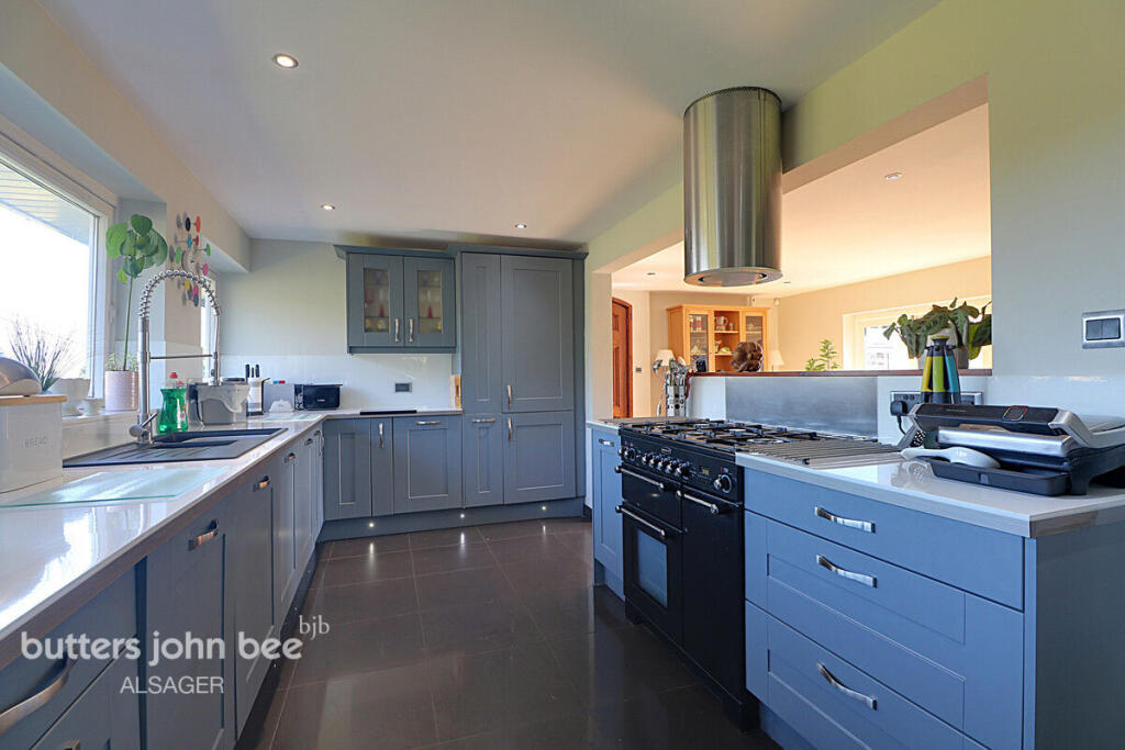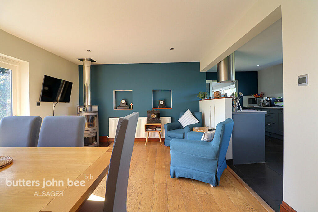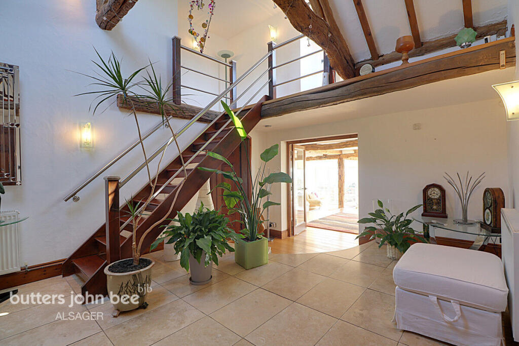 High Meadows is a detached country house located in Mow Cop, Staffordshire. The property boasts three bedrooms and four bathrooms, with a substantial 3,348 sq ft of living space. The house is set within a well-maintained garden and offers scenic views of the surrounding area. The interior features modern fixtures and fittings, including a contemporary kitchen and bathrooms. While the property is situated in a semi-rural location, it remains within a reasonable distance of local schools and transportation links. The asking price of £600,000 reflects the property’s size, condition, and desirable location.