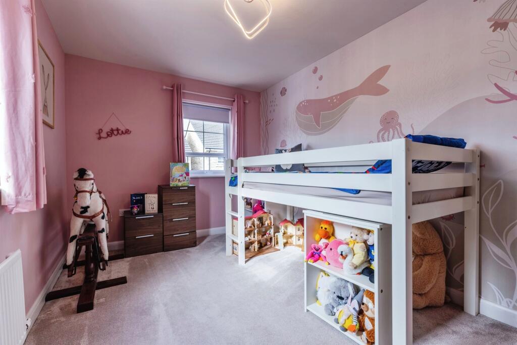NO CHAIN, TUCKED AWAY DETACHED PROPERTY SET ON A PRIME POSITION ON THIS WELL REGARDED CUL DE SAC. IMMACULATE FOUR BEDROOMS WITH SPACIOUS DINING KITCHEN, LOUNGE, DINING ROOM/SECOND RECEPTION, CLOAKROOM, MASTER EN SUITE, BATHROOM, DRIVEWAY, ELECTRIC CAR CHARGER, DETACHED GARAGE, GOOD SIZE GARDENS.
