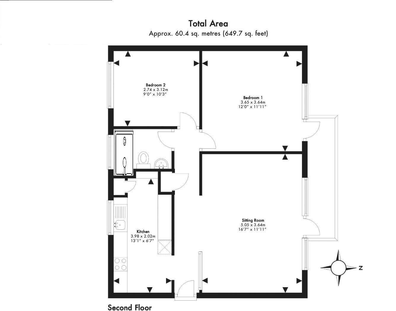 A light and stylishly presented second floor apartment with oblique sea views.