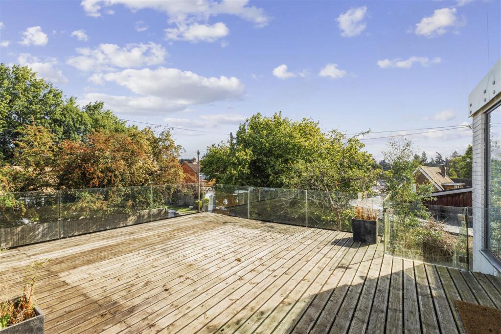 An individual, gated five-bedroom detached home with elevated roof terraces overlooking Windsor Great Park — offered with no onward chain. This distinctive property combines flexible living space with unique views, set behind secure gates and featuring two roof terraces. On the ...