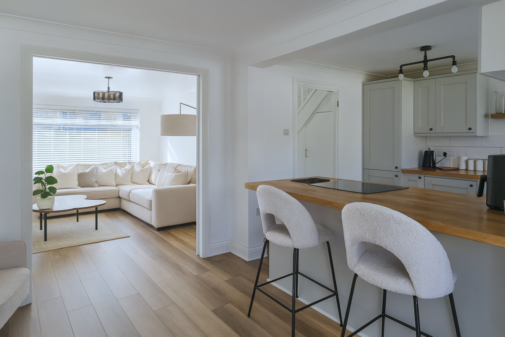 GUIDE PRICE £270,000 - £290,000. Stylish and beautifully presented family home featuring a rear extension, open-plan kitchen/diner, modern interiors, and a landscaped two-tier garden with summerhouse ideal for home working. Located in a quiet road close to Outstanding-rated schools...