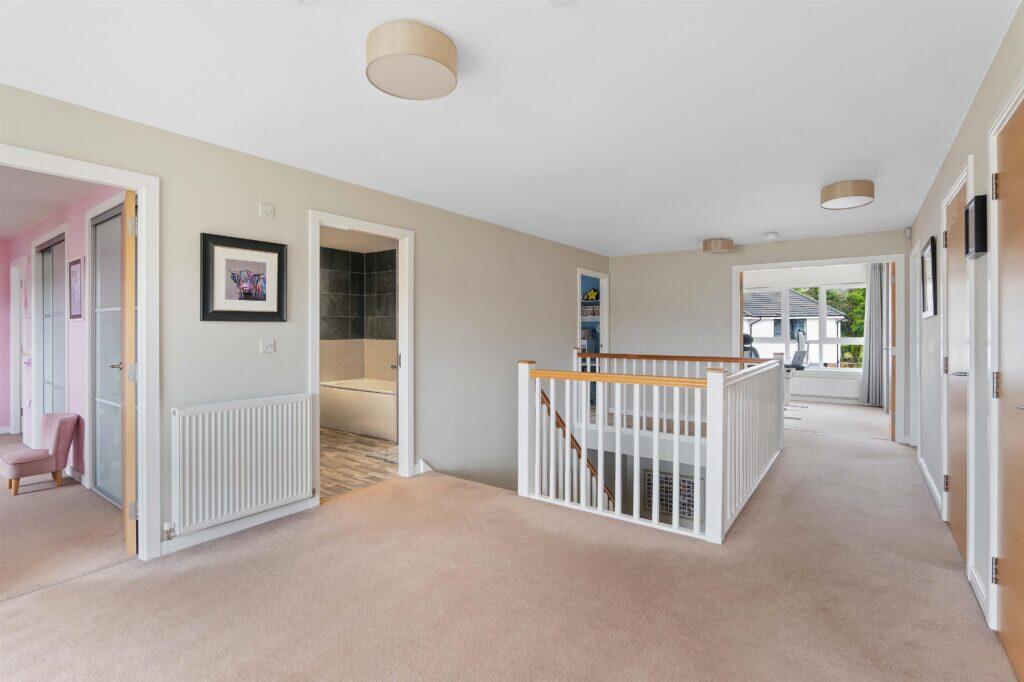 This is a stunning, contemporary, 5-bedroom detached house set within beautifully landscaped private garden grounds.