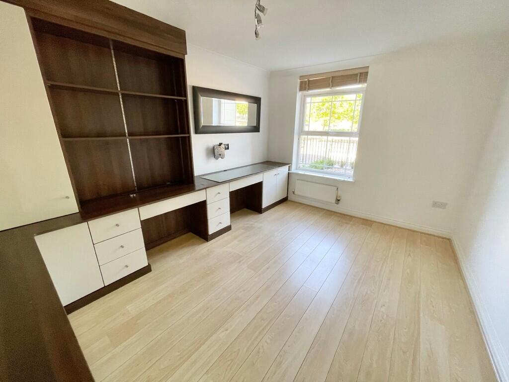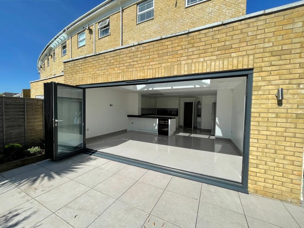This is a four-bedroom terraced house located on Dettingen Crescent, Deepcut, Surrey Heath. The property boasts three bathrooms and a spacious 2,088.20 sqft of living space. The house is in good condition, featuring a modern kitchen with an extension that opens onto a paved garden area. It also benefits from a study, utility room, garage and parking. The property is located within a reasonable distance of local schools and transportation links, offering a balance of suburban living with accessibility to amenities. The property is priced at £750,000, which is above the average price in the area, but the price per square foot is below the average. The house is well-presented and offers ample living space, making it a desirable family home.