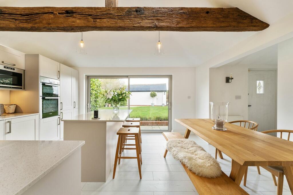 This three-bedroom, two-bathroom property located in Matching Tye, Essex, presents itself as a well-maintained and updated home. The images reveal a stylish interior with a modern kitchen and bathrooms. The exposed beams and overall character of the house contribute to its charm. The property benefits from a garden with outbuildings. While the exact plot size isn’t provided, the visuals suggest a garden of moderate size. The location in the village of Matching Tye offers a peaceful environment with good access to nearby schools that have received good Ofsted ratings. Commuting may require driving to nearby stations like Sawbridgeworth or Harlow Mill. The list price of £612,500 seems consistent with the general market trends of the area, though more robust data on comparable properties and price per square foot is needed to confirm this with a higher degree of accuracy. Overall, the property presents a strong offering for those seeking a well-maintained character home in a desirable village setting.