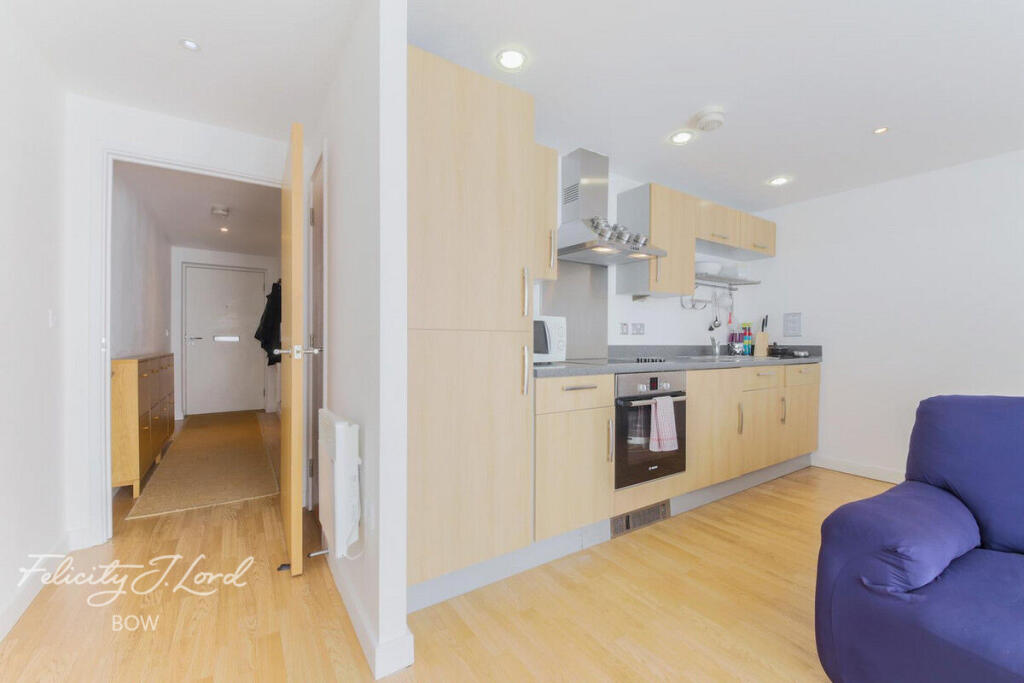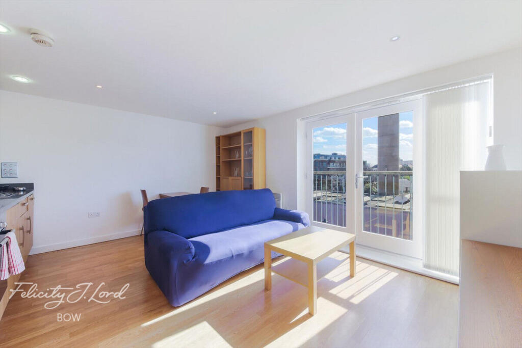 A modern one double bedroom third floor apartment located just off Tredegar Road in the popular Eastside Mews development. Offering an open plan kitchen/lounge with integrated appliances and juliet balcony, a double bedroom and large bathroom