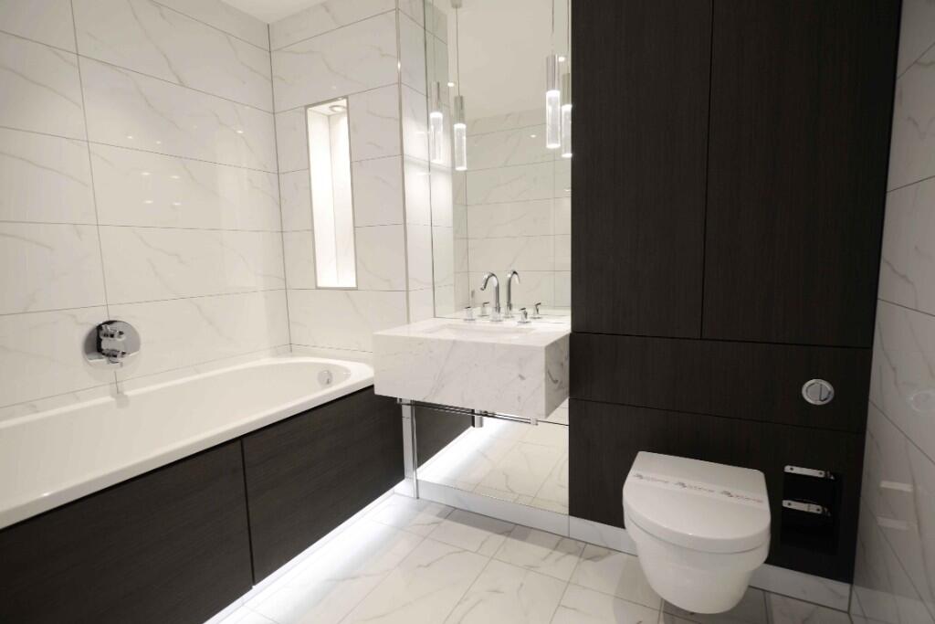 This beautifully presented two-bedroom, two-bathroom apartment is offered fully furnished within the prestigious Lancaster House at Sovereign Court.