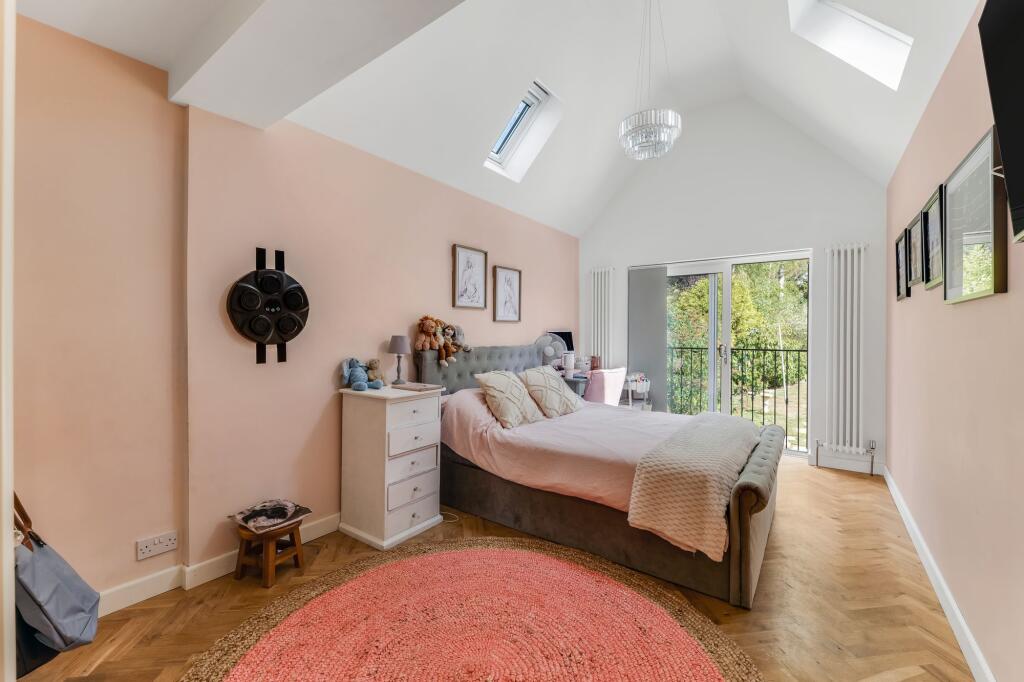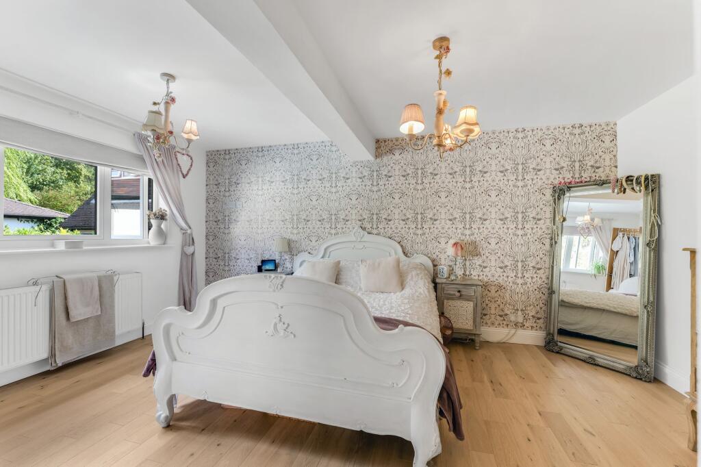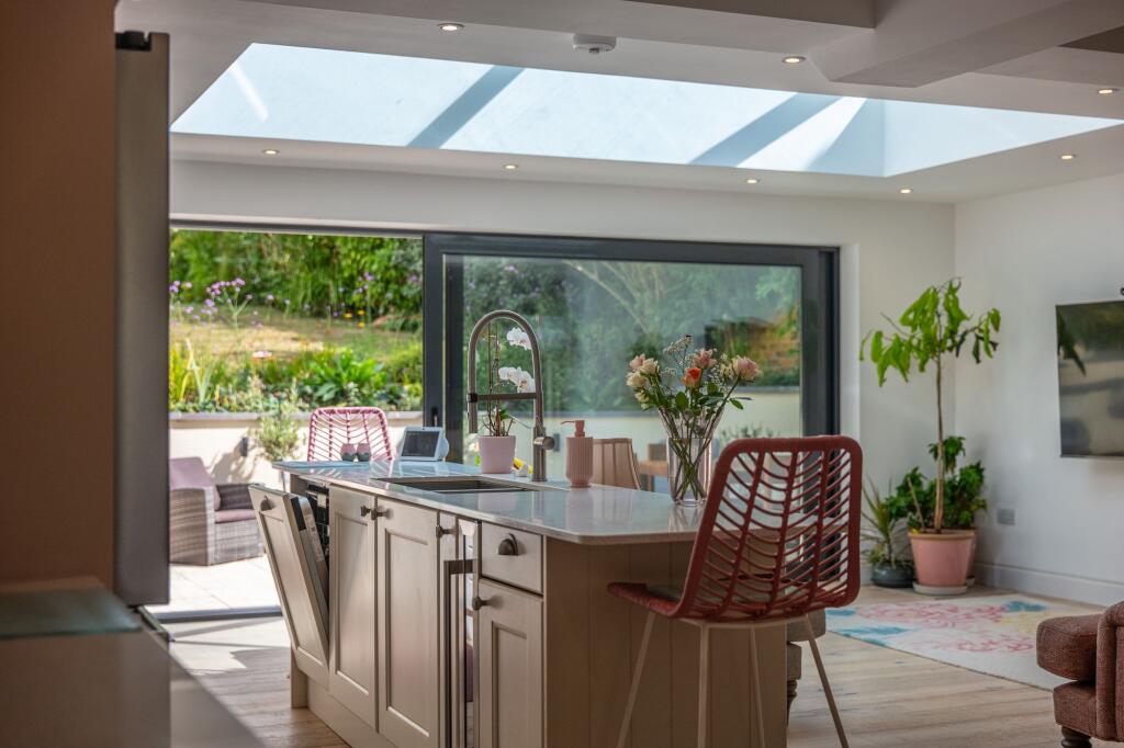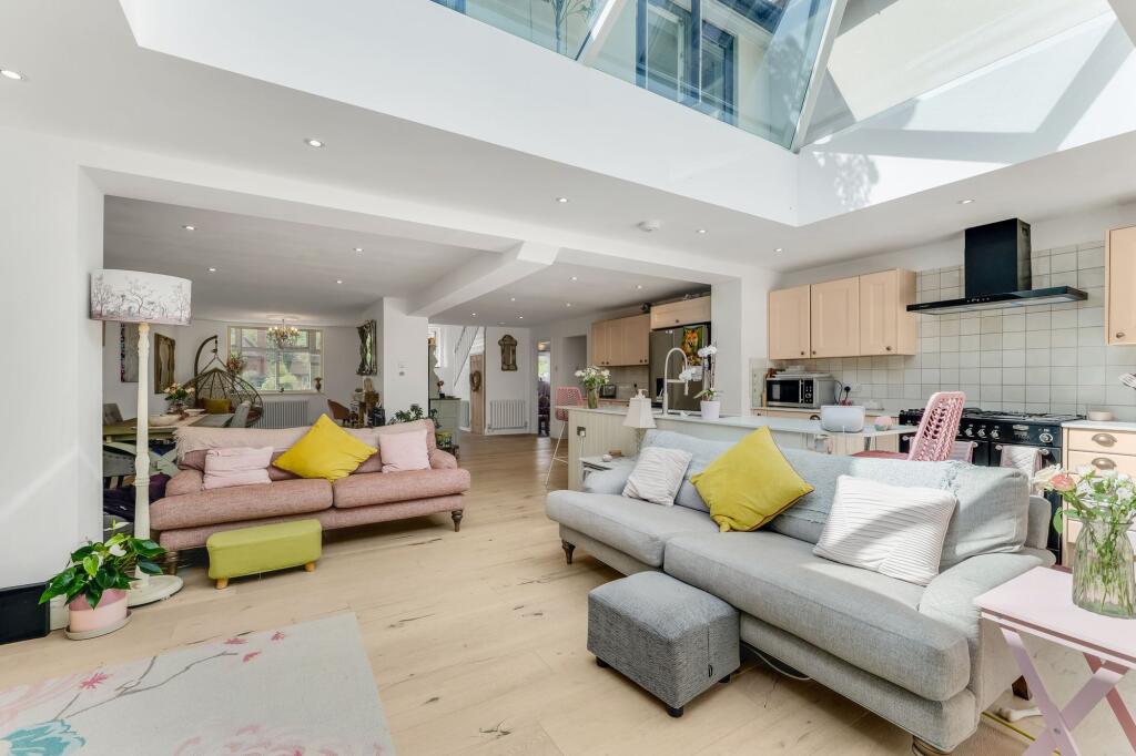 Handsome and spacious 4-bed detached home in sought-after Fairfield Crescent, Glenfield. Stunning living area with bespoke kitchen, cosy snug area with log burner, 4 double beds, 3 baths, large garden with summer house, close to amenities, good schools & transport links.