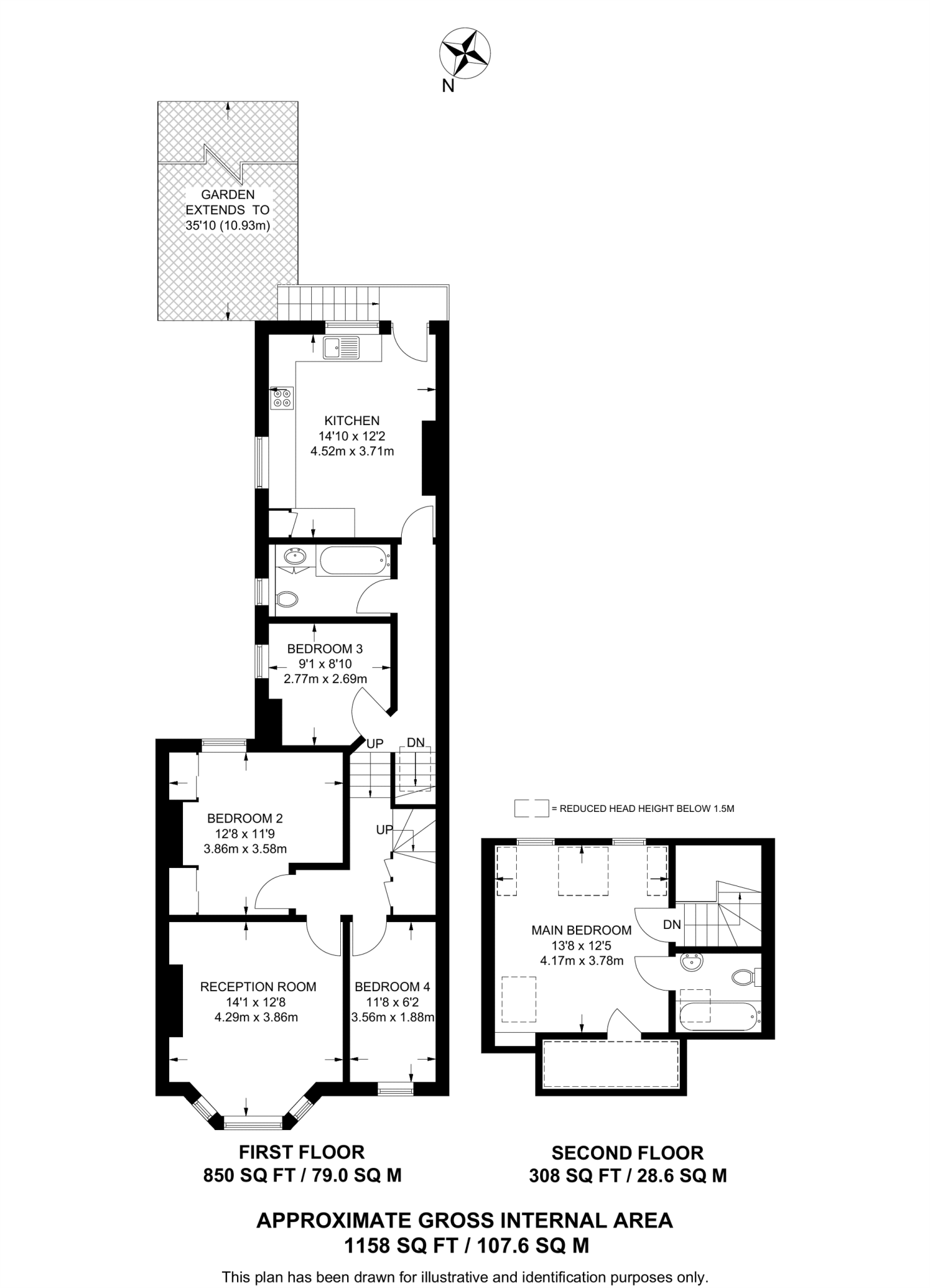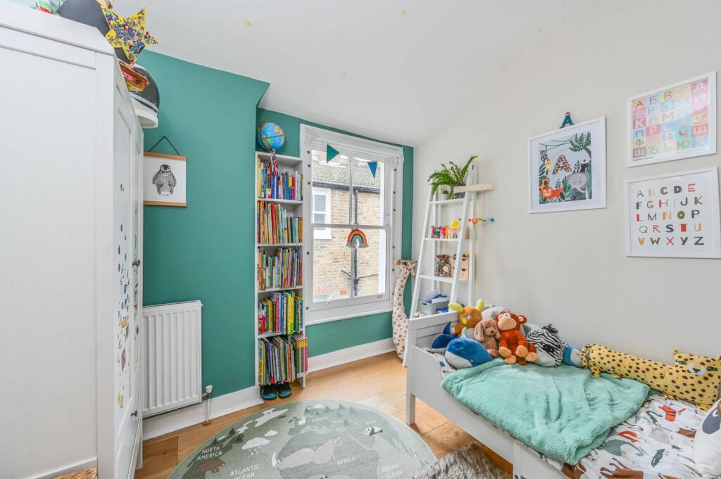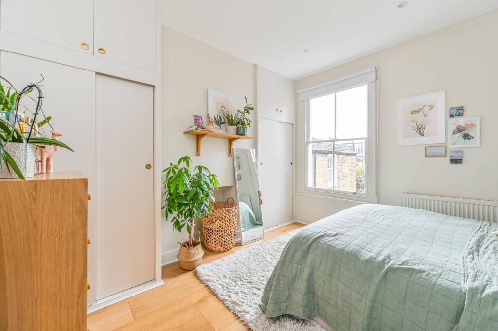 This gorgeous split level flat is set over the 1st and 2nd floor and offers 4 wonderful double bedrooms, a private garden, separate integrated kitchen and a beautiful reception room with bay window.