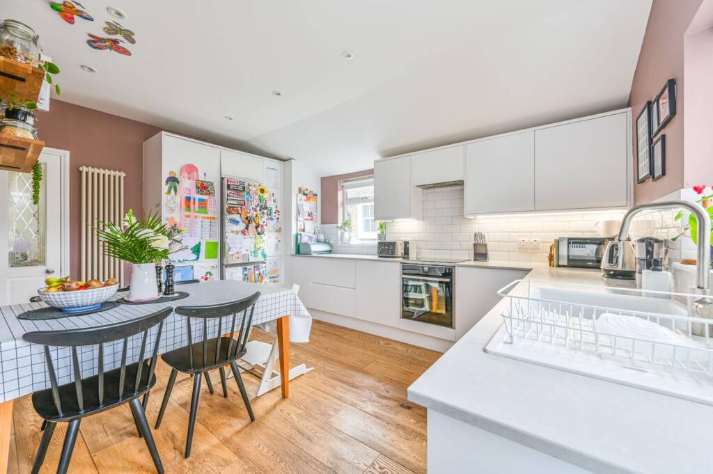 This property is located on Haverhill Road in the Hyde Farm Estate, London, SW12. The area benefits from being close to several highly-rated primary schools such as Henry Cavendish and Telferscot Primary School, both rated as outstanding by Ofsted. Transport links are also convenient, with Balham station approximately 1.26km away, providing access to the Southern line. The property itself is a four-bedroom house with two bathrooms, spanning 1,158 sqft on a plot of 3,510 sqft. Based on the images provided, the property appears to be well-maintained and recently renovated, with a modern kitchen and bathrooms. The presence of a garden adds to its appeal. Comparing the list price of £1,000,000 to the average price of £794,343 and average price per sqft of £768 in the area, the property seems slightly overpriced, considering comparable properties in the area. However, the larger plot size and renovated condition could justify a higher price.