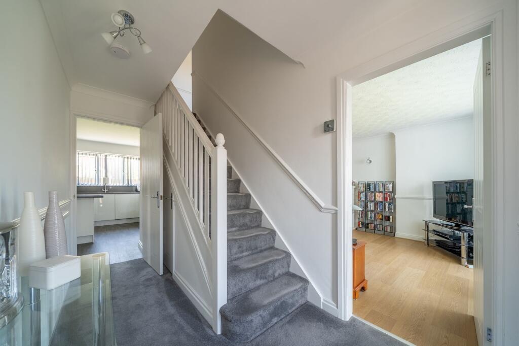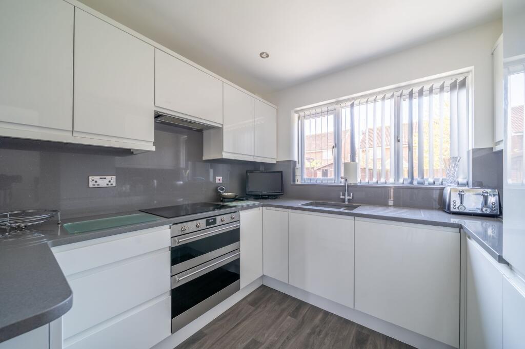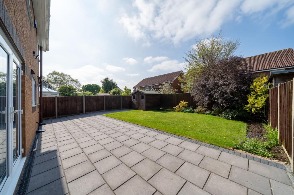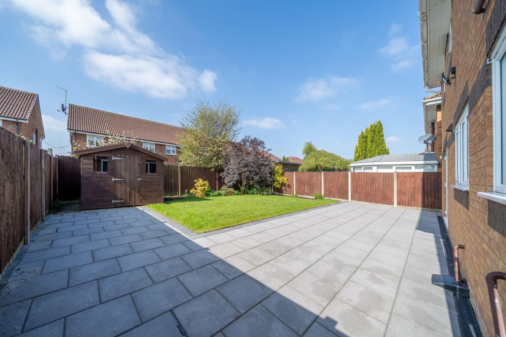This four-bedroom detached house is located in Maghull, Merseyside. The property benefits from a modern fitted kitchen and updated bathrooms. There is also a good-sized garden with a patio area and shed. The location is convenient, with nearby schools and transport links. However, the plot size is not specified. Compared to the average house price in the area, this property seems slightly above average.
