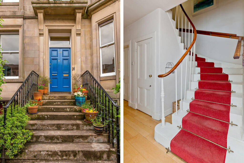This property is a 4 bedroom, 2 bathroom flat located in the Morningside area of Edinburgh. The flat is situated in a traditional stone-fronted building, characteristic of the area. The images show the property to be well maintained and in good condition, with period features such as high ceilings and ornate cornicing. The kitchen appears to have been recently updated with modern appliances, while maintaining a traditional style. The property also benefits from a private garden, which is a desirable feature in a city centre location.