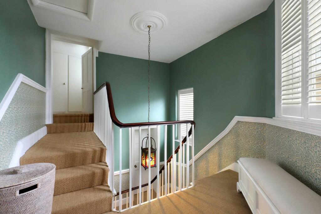 The large, private walled garden, clearly visible in multiple photographs, offers considerable privacy and space, a rare commodity in a town centre location. Mature trees and landscaping suggest a well-established and attractive outdoor space. The convenient location within the Eldon Square conservation area means the property is close to Reading town centre, offering easy access to shops, restaurants, and transport links. The proximity to excellent local schools further enhances the property’s family appeal.