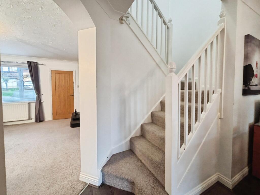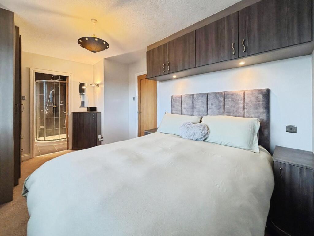 Beautifully presented 3-bedroom semi-detached home in the sought-after Beaconside estate. Positioned at the top of a private cul-de-sac, it features a driveway, garage, and stylish black-framed exterior. Inside offers modern living spaces, a conservatory, spacious kitchen, ensuite master bedroom, an