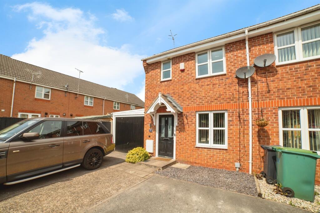 Minkley Drive - £180,000. Well-presented two-bedroom semi-detached with driveway for three vehicles and garage. Tucked away from the main road with lounge, kitchen diner, W/C, and garden with shed and electrics. Two generous bedrooms and family bathroom. Call Hall and Benson to view.