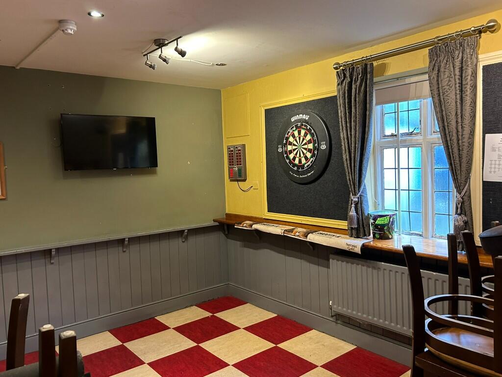 The Rose Inn is a substantial part three, part two storey building with rendered elevations beneath pitched slated, and tiled roofs. There is a forecourt beer patio area and a further external trading area, a Skittle Alley and beer garden/patio to the rear. 14 spaces car park opposite.