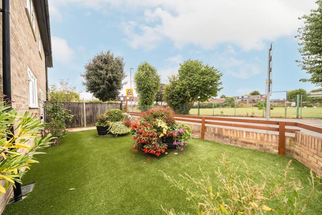 This is a three-bedroom, ground-floor, purpose-built corner plot apartment featuring a spacious reception room, a separate kitchen, and a well-maintained wraparound private garden. The property also benefits from a garage, off-street parking, and the freehold.
