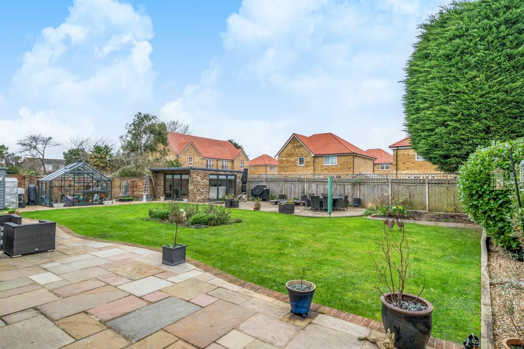 This five-bedroom, three-bathroom detached house located on Sinah Lane, Hayling Island, is presented as a beautifully presented family home. The property boasts an open-plan living area, multiple reception rooms, a double garage, two ensuite bedrooms and a dressing room. Images highlight a stylish, recently updated kitchen, a dedicated home cinema/garden room, and a significant garden. The location on Hayling Island is attractive, offering access to beaches and a more affluent, peaceful environment. Nearby schools are well-regarded, and there are several train stations within a reasonable commuting distance. However, a complete evaluation of the property’s value requires access to more precise plot size information and verified average price-per-square-foot figures for comparable properties in the area.