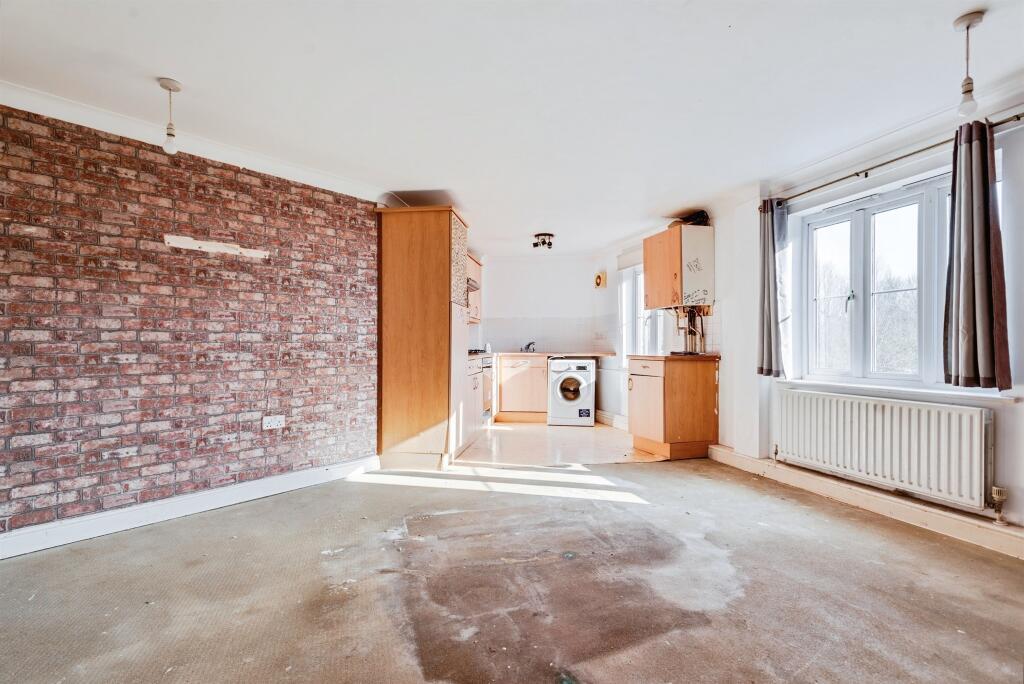 This two-bedroom apartment in Witney, Oxfordshire is listed at £175,000. The property is located in the Witney East locality, close to Madley Brook Community Primary School and Springfield School (both within 0.33km). Wood Green School, with a good Ofsted rating, is also relatively close by (0.72km). The proximity to these schools is a positive aspect for families. However, the provided images reveal that the apartment is in need of significant renovation. The flooring appears damaged, and the kitchen and walls show signs of wear and tear. The lack of a garden (plot size 0.00 sqft) is a notable drawback.