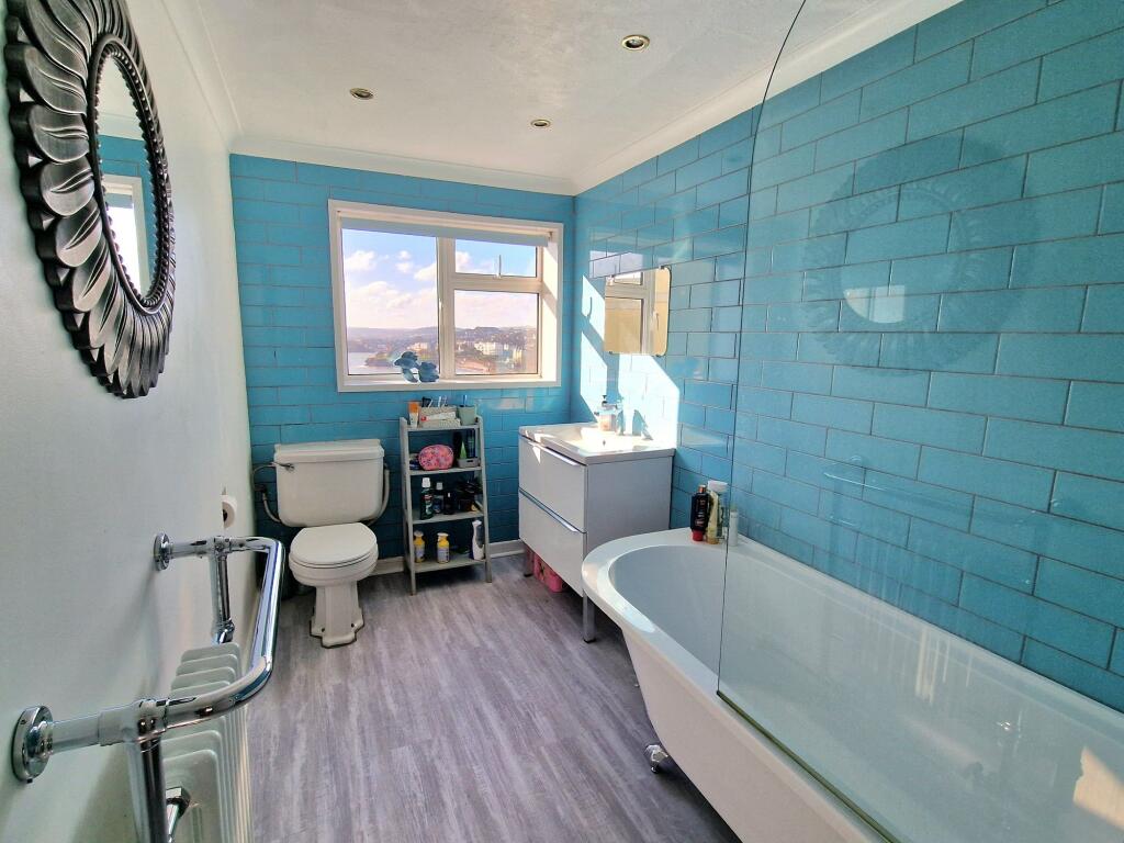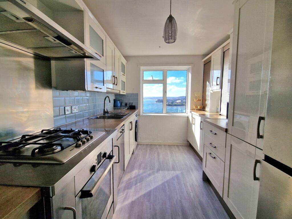 The property is located in Torquay, Devon, a coastal town in the South West of England. The area benefits from proximity to the seafront, offering scenic views as shown in the photographs. The presence of several nearby schools, including Ellacombe Church of England Academy and Upton St James Cofe Primary School (both rated ‘Good’ by Ofsted), suggests good educational opportunities within a reasonable distance. Torquay train station is also relatively close, providing convenient access to other parts of the UK. The photos reveal a property with sea views, suggesting a desirable location for many buyers.