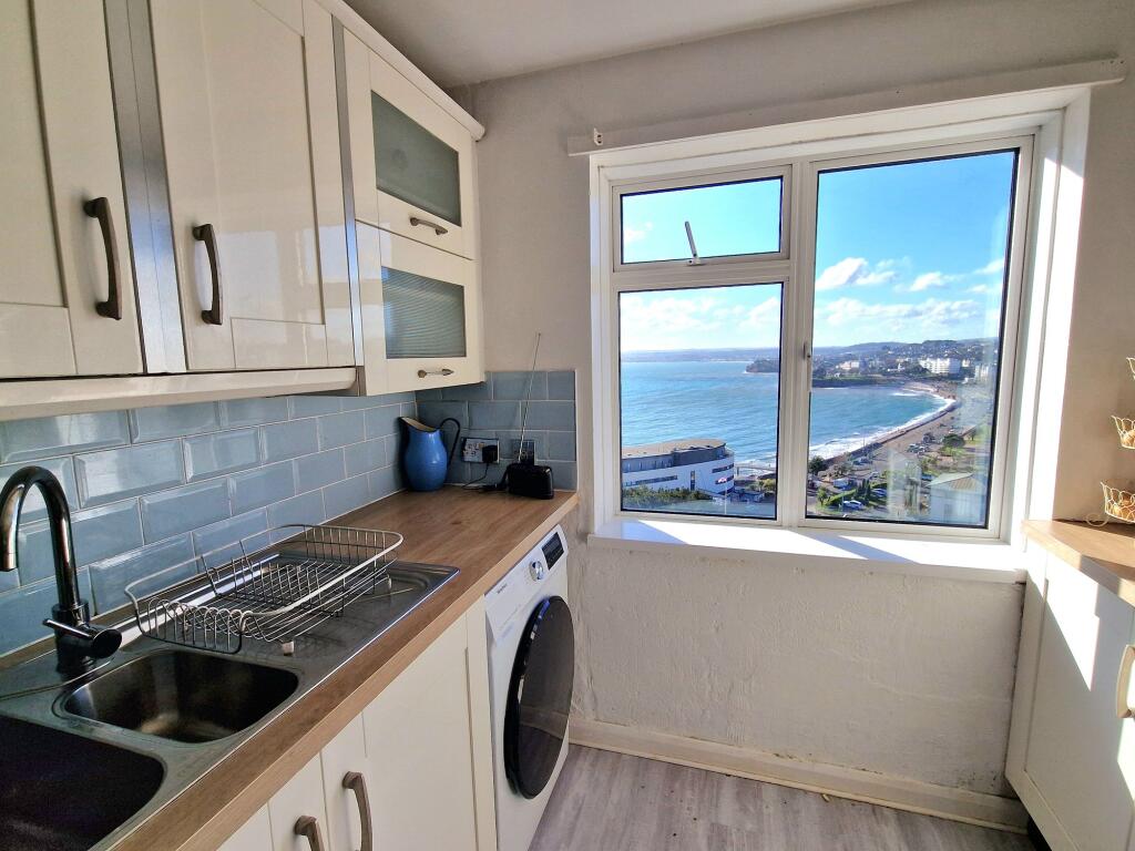 Commanding an EXCEPTIONAL SEA VIEW over Tor Bay and Torre Abbey Sands, this COASTAL APARTMENT forms part of a development perched on the hillside directly above Torquay’s sea front promenade.