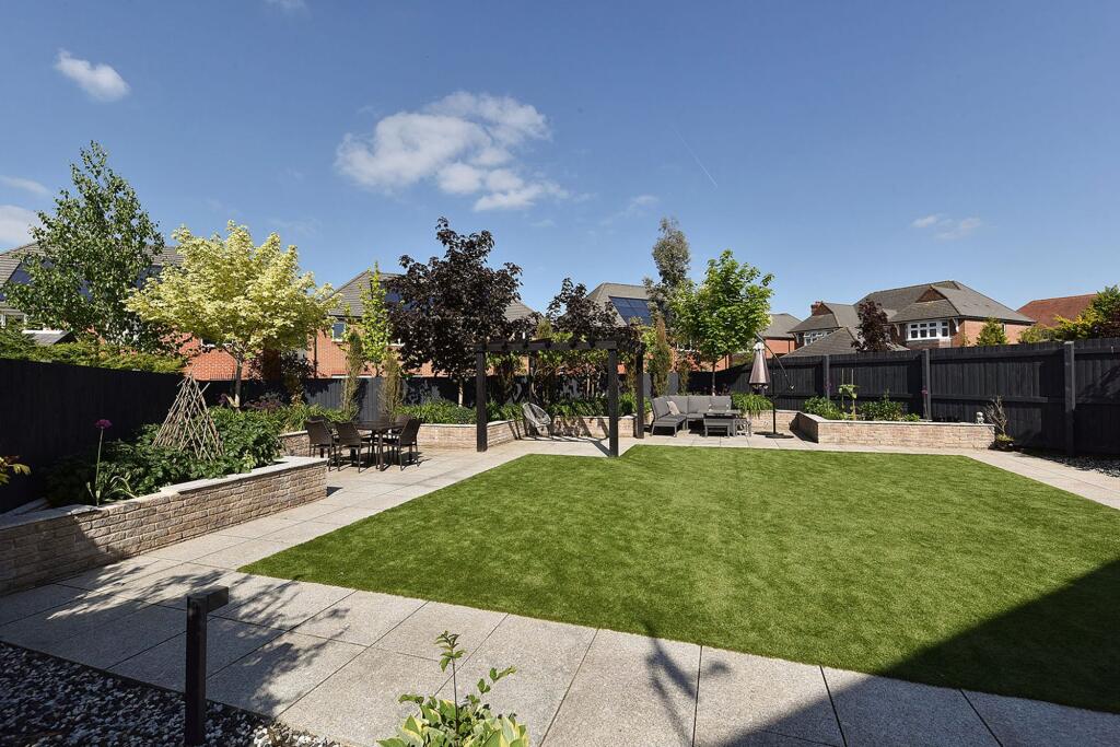 This property is a modern detached house located on Albemarle Avenue in Hartford, Cheshire. Hartford is a desirable area with good schools and transport links, including a train station within a short distance. The property itself is in excellent condition, appearing recently built or extensively renovated. It boasts a substantial plot size with a well-maintained garden, adding to its appeal. The list price of £770,000 is higher than the average for the area, but given the property’s size, condition, and location, it may represent reasonable value for money, particularly when compared to similar properties in the vicinity. The average price per square foot in the area is £299, while this property is listed at approximately £427 per square foot. This higher price per square foot is justified by the superior condition and larger plot size.