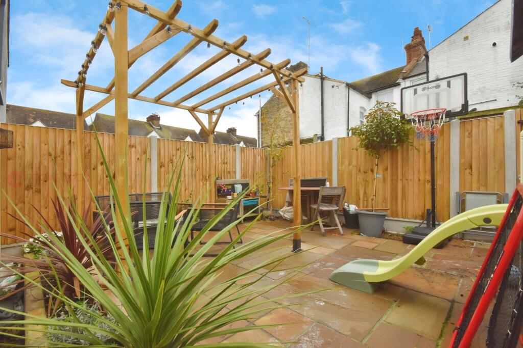 This is a 4-bedroom terraced house on Approach Road, Broadstairs, listed for £425,000. The property is in good condition, with a modern kitchen and bathroom. It benefits from a garden. The location is convenient, with proximity to the train station and schools. While the price per square foot appears higher than the area average, the overall condition and desirable location support the asking price. The property would suit a family looking for a well-maintained home in a convenient location. The property is a traditional build that has been modernised to a good standard.