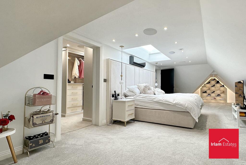 This is a substantial detached property located in the desirable area of High Legh, Cheshire East. The house boasts five bedrooms and four bathrooms, suggesting ample space for a family. The interiors are modern and well-maintained, with high-end finishes evident in the kitchen and bathrooms. The property also benefits from a large plot with a well-kept garden. While the location offers good schooling options and a pleasant village environment, the distance to the nearest train station may be a drawback for commuters. The asking price of £3,750,000 appears high when compared to the average property price in the area, potentially impacting its value for money.