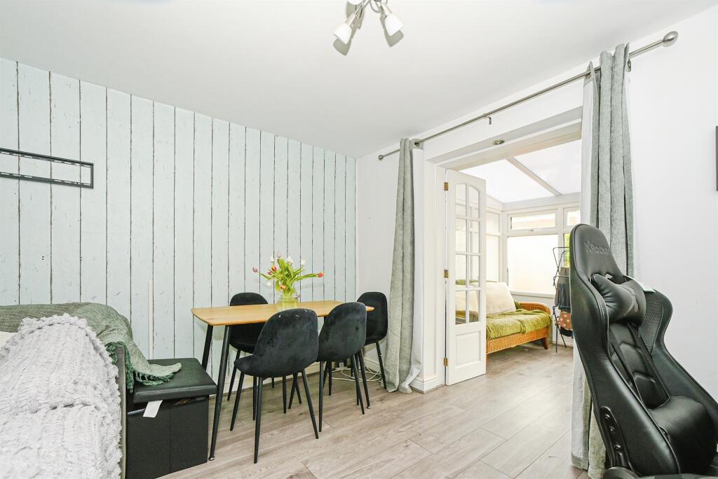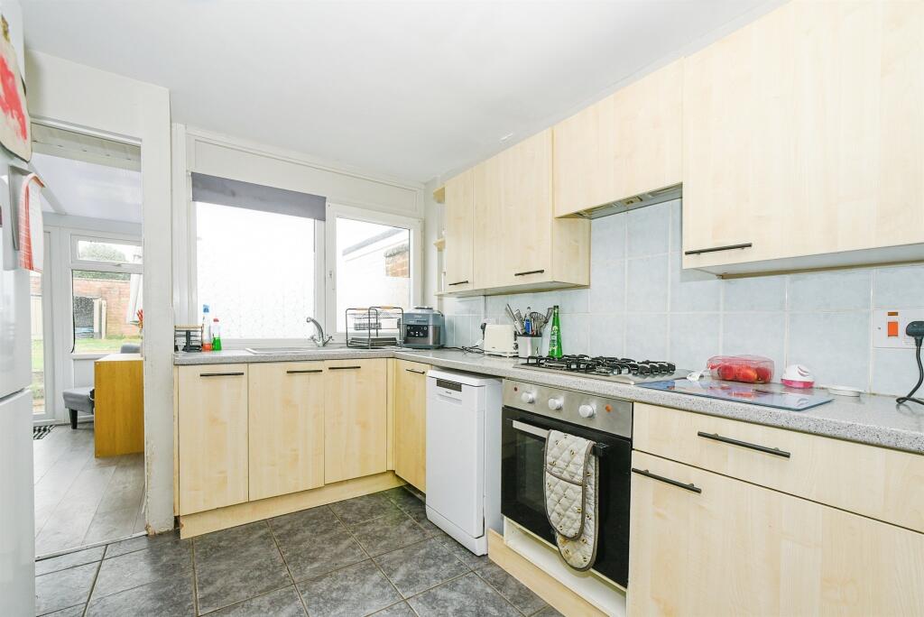 Three-bed mid-terrace in popular Highworth, overlooking a green. Features include lounge, dining room, kitchen, utility, cloakroom, conservatory, and enclosed rear garden. Three bedrooms and family bathroom upstairs. Offered with no onward chain.