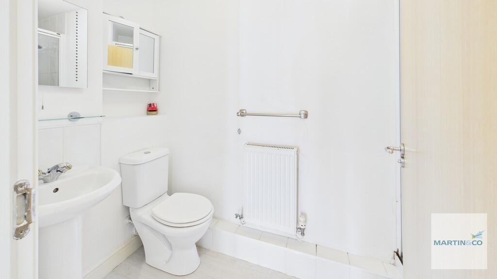 Well-presented top-floor flat, tucked away at the end of a cul-de-sac. Close to schools, shops and transport links, the two-bedroom flat has an allocated parking space. The master bedroom features French doors to a Juliette balcony and a walk-through wardrobe leading to an en-suite with basin, to...