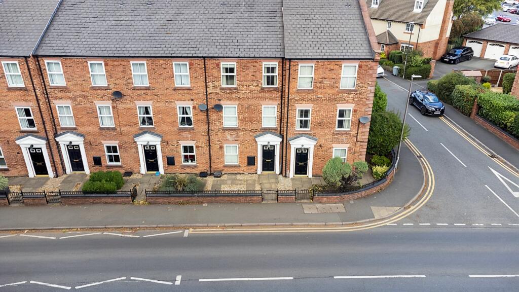 This is a 4-bedroom terraced property on Crewe Road in Sandbach, Cheshire. The property benefits from three bathrooms and a garden. The property appears to be in good condition, with modern fixtures and fittings. Sandbach Primary Academy is within walking distance. Sandbach railway station is approximately 3km away. The listing price is £300,000.