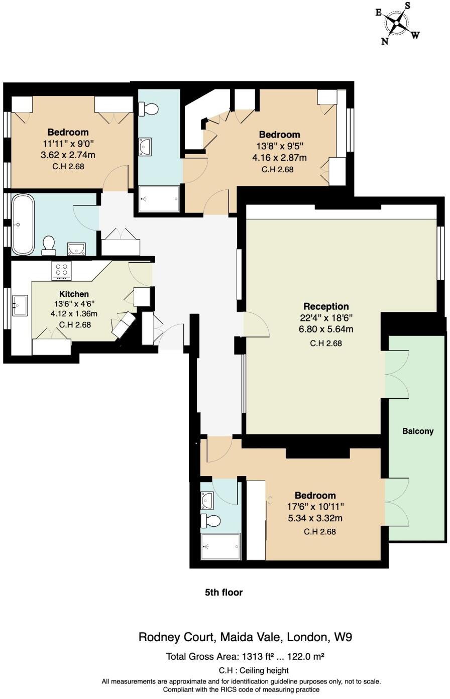 A beautifully presented three bedroom, three bathroom lateral apartment (1313 sq ft / 122 sq m) situated on the fifth floor of this red brick mansion block. The property comprises bright and spacious reception room with a dining area that opens onto a southwest-facing balcony, modern, fully integ...