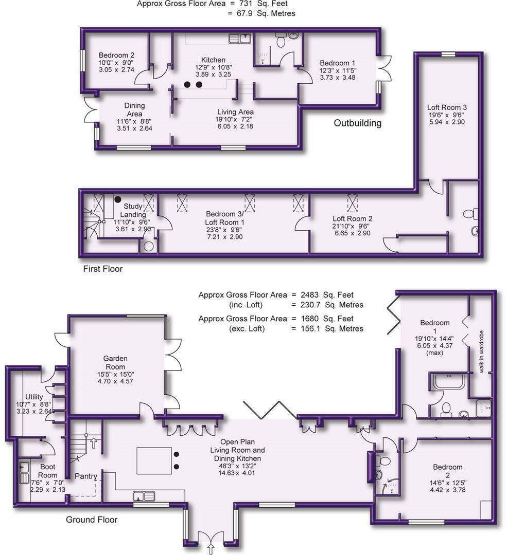 A UNIQUE DETACHED BUNGALOW WITH ADDITIONAL LOFT ROOMS AND A LARGE OUTBUILDING, IN A SEMI RURAL LOCATION STANDING ON A GOOD SIZED, ELEVATED GARDEN PLOT. 2483QFT Entrance Area. Fabulous Open Plan Living Room and Dining Kitchen. Utility Room. Two Double Bedrooms. Two Bath/Shower Rooms. Thr...