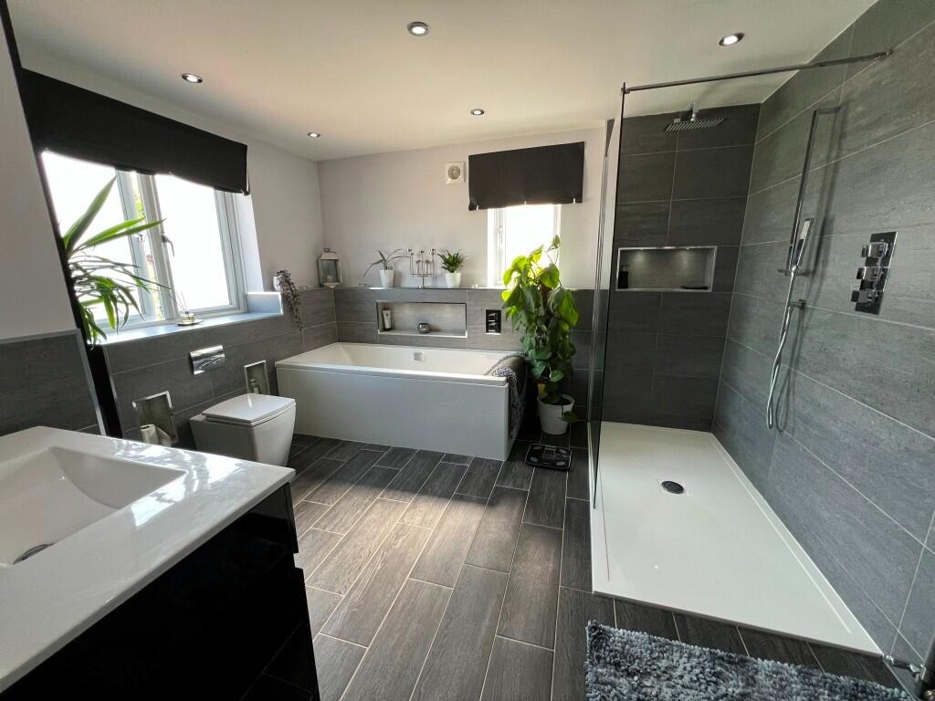 The house itself appears well-maintained, showcasing a blend of traditional and contemporary features. The interior photographs reveal a comfortable and lived-in atmosphere. The kitchen and at least one bathroom seem recently updated, while other areas retain a more traditional aesthetic. The property’s finishes and décor might benefit from some modernisation to align with current market trends but overall, the house displays good structural integrity and a comfortable layout, suitable for family living.