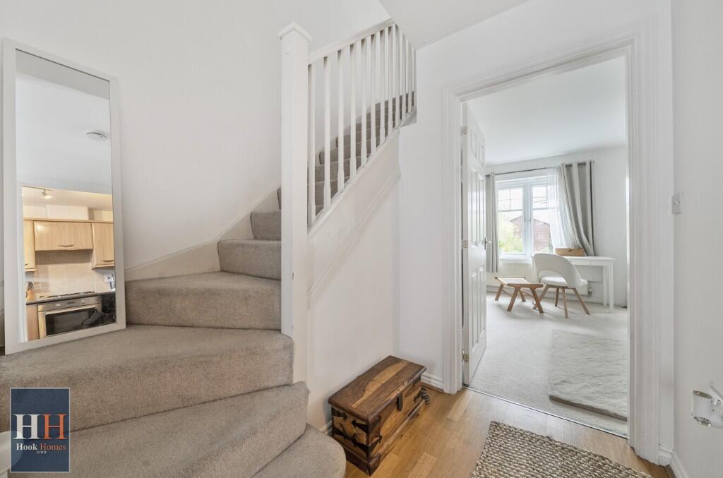 Hook Homes -An end of terraced house, with a pleasant location fronting onto an open green, on the popular Holt Park development on the edge of Hook. The property has double glazed windows, gas central heating and is sold with no onward chain.