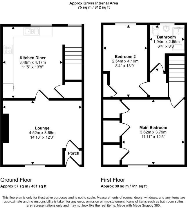 Mid terraced house, available immediately on an unfurnished basis. Accessed via a UPVC entrance door to the lobby area, lounge with feature fireplace and spacious kitchen/diner with integrated oven and hob and space for a dining table. Stairs from the kitchen leads to the first floor landing, 2 b...