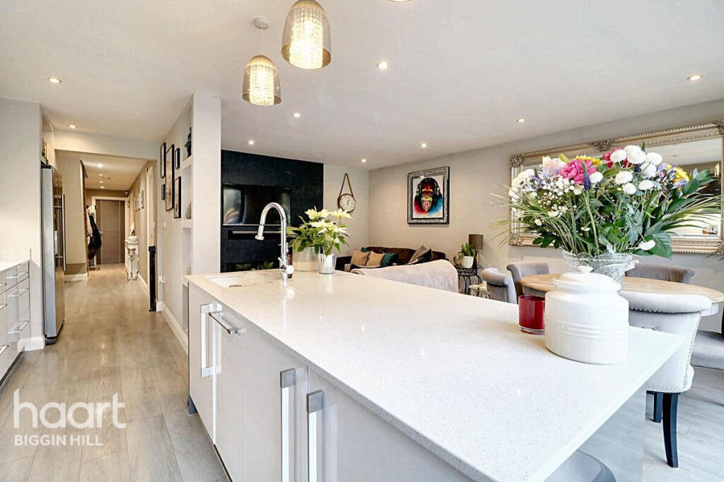 The property is a 4-bedroom, 2-bathroom detached bungalow located on Main Road in Biggin Hill, Bromley. The location benefits from being close to good schools such as Charles Darwin School (0.96km) and Biggin Hill Primary School (1.01km), both rated as ‘Good’ by Ofsted. Several transport links are also within reasonable distance, although specific travel times are not provided. The property itself appears to be in excellent condition, having undergone recent renovations or extensions as evidenced by the modern kitchen and bathrooms shown in the photographs. The property also includes a garden and what seems to be a detached garage/workshop. Determining the price reasonableness requires further information on average property prices per square foot in the area. Without this data, a definitive statement on value cannot be made.