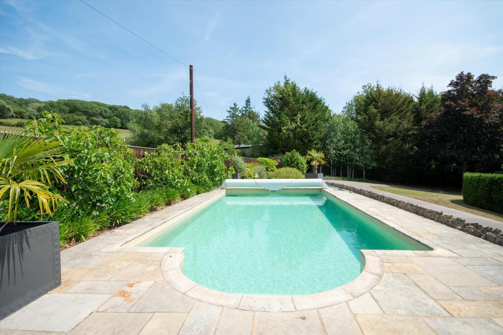 A detached property in Cleeve Hill, Cheltenham, Gloucestershire. The property has 6 bedrooms, 4 bathrooms, a swimming pool, a gym, and a large garden. It’s in excellent condition with modern interiors and well-maintained exteriors.